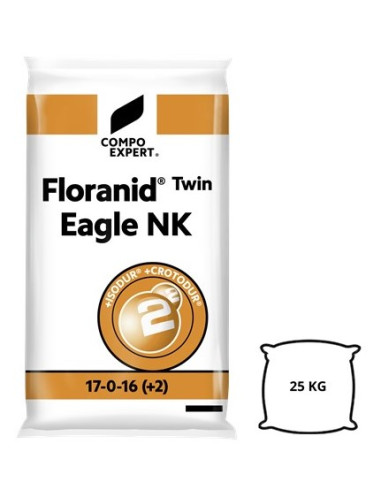 FLORANID TWIN EAGLE NK 17-0-16 (+2), es un fertilizante complejo de liberación lenta de granulado extrafino. Incluye tecnología doble N (ISODUR y CROTODUR).