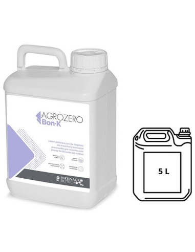 Agrozero Bon-K es un jabón potásico ideal para la limpieza de manchas y suciedad provocadas por insectos como pulgones, moscas blancas, cochinillas, entre otros, con efecto fortificante del cultivo.